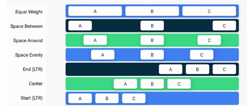 - horizontalArrangement = Arrangement.SpaceEvenly