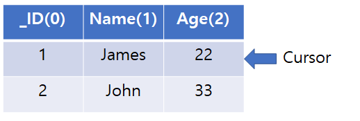 ex) Cursor.getString(1); 은 Name에 있는 James 반환