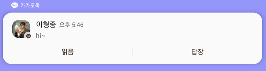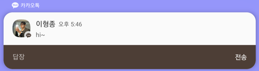 AndroidManifest.xml에 receiver를 추가한뒤 실행시킬 ActionPushReceiver.class를 작성한다. notificationId는 해당 알림의 Id를 확인하여 버튼 클릭시 바로 알림을 종료시켜 주기 위함이다. 답장 클릭 후 텍스트 입력후 전송을 클릭하면 Intent와 비슷하게 RemoteInput으로 텍스트를 받아올 수 있다. getCharSequence()로 텍스트를 받아 사용하도록 하자.